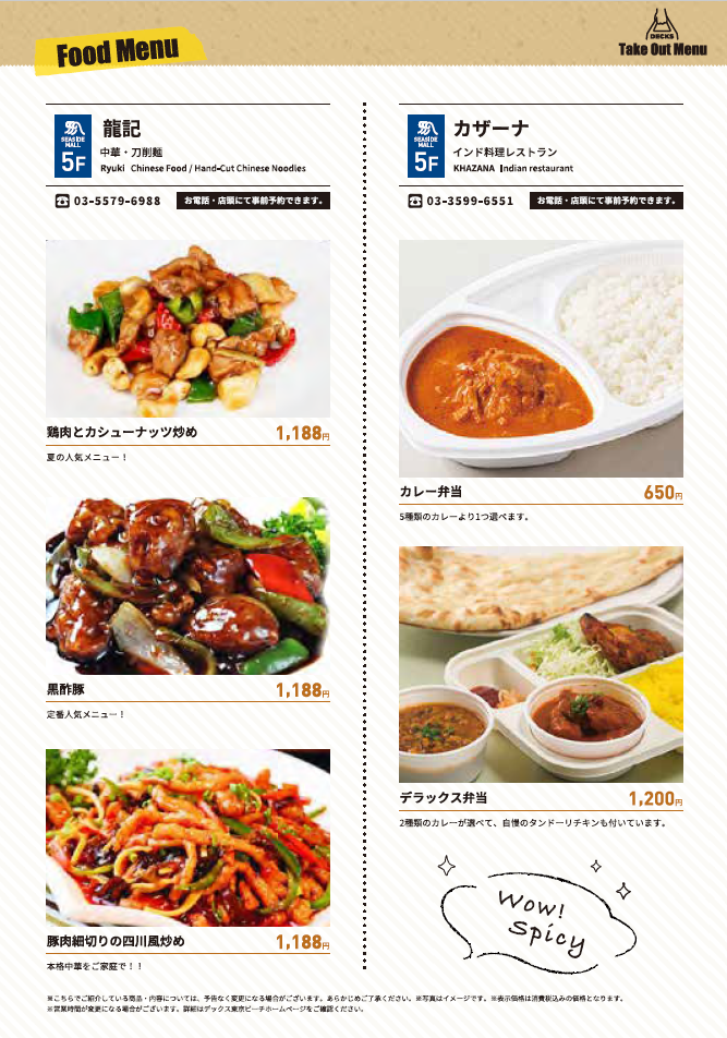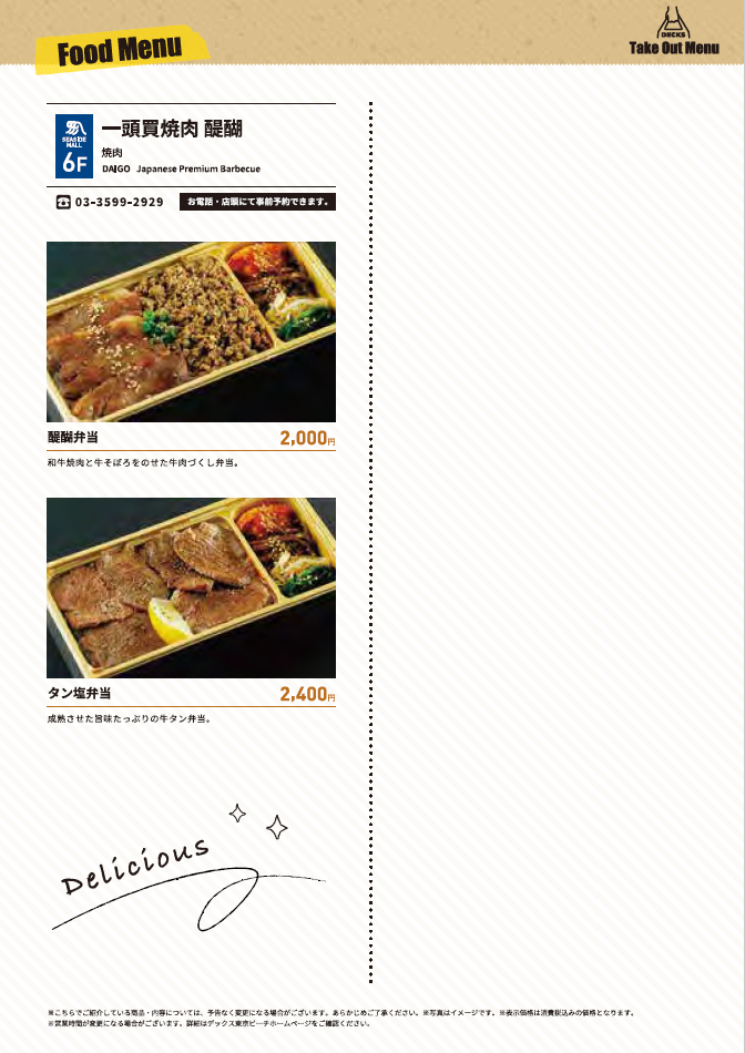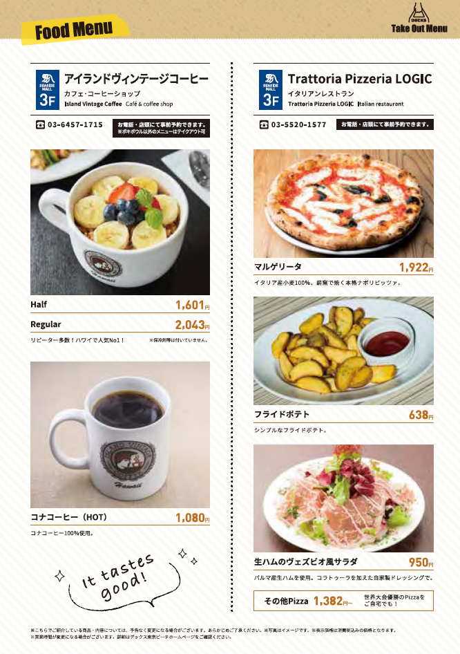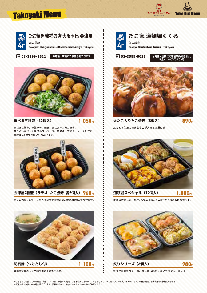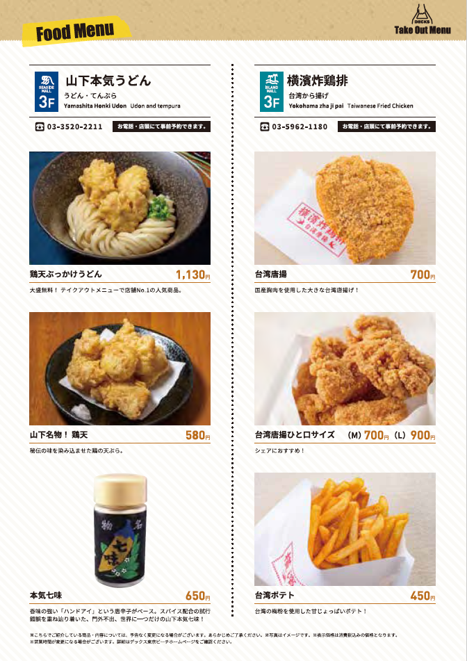 デックス東京ビーチのテイクアウトメニューをご紹介いたします。