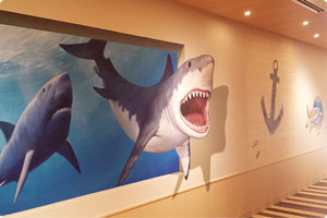 海をテーマにした6Fレストランフロアの壁画