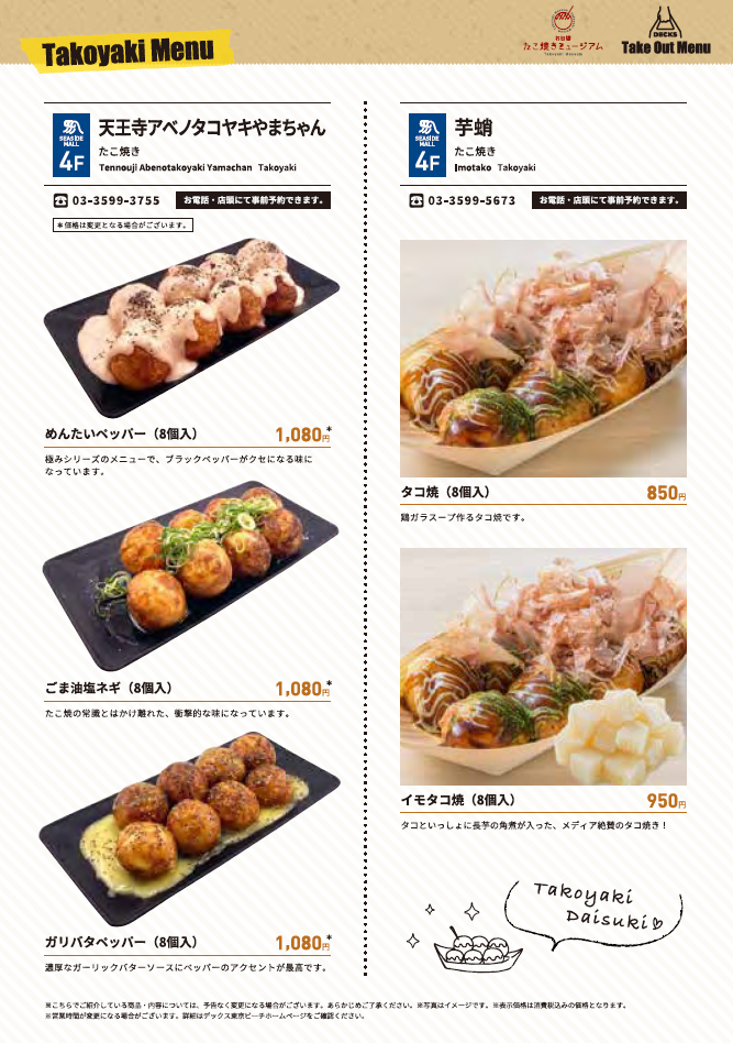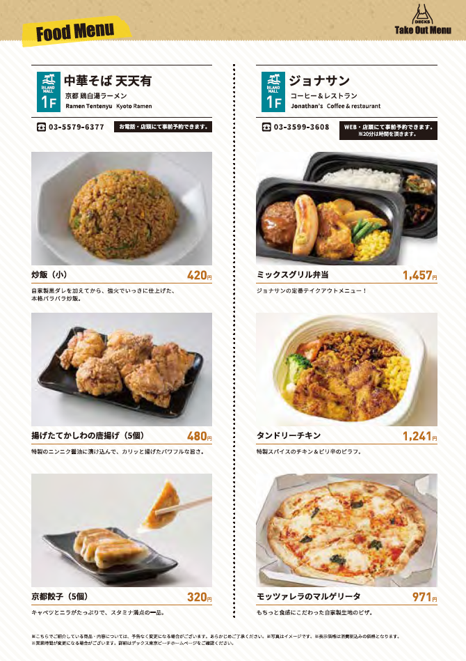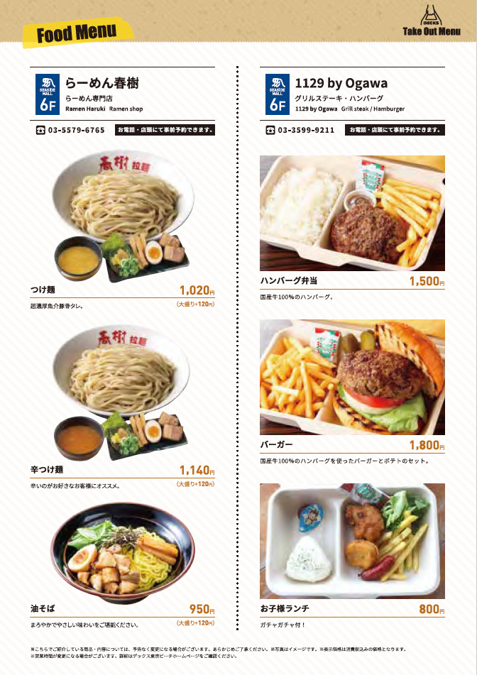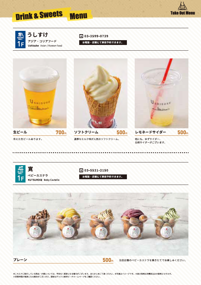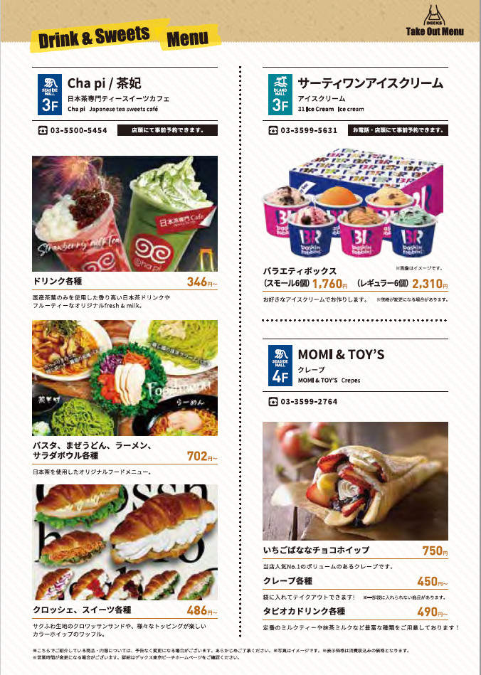 デックス東京ビーチのテイクアウトメニューをご紹介いたします。