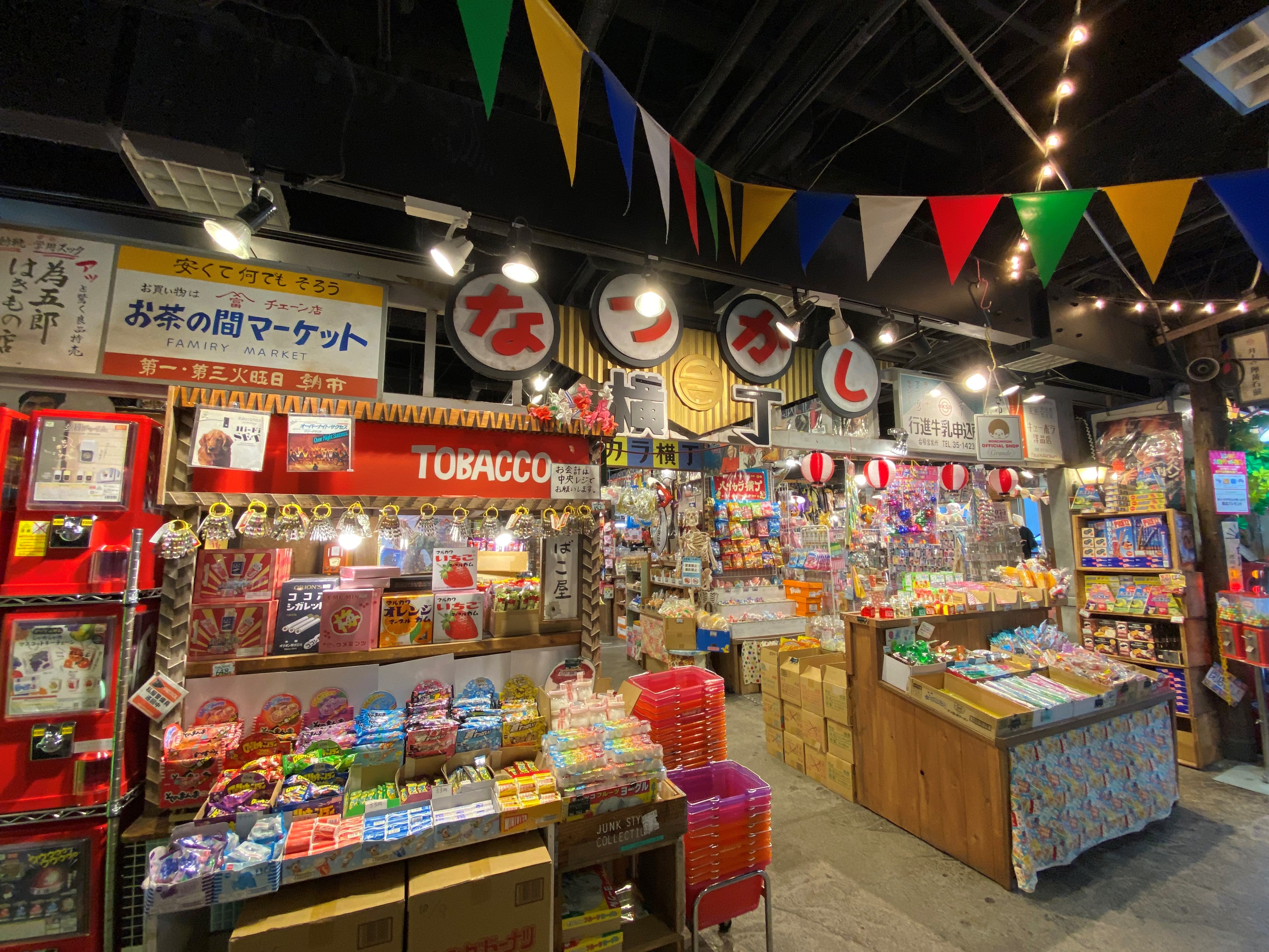レトロ空間 ジョイポリス横のエスカレーターを上がってスグ!!!台場一丁目商店街の「ハイカラ横丁」です。コスモス自販機とキティちゃんのポップコーンが目印のお店!圧巻の駄菓子コーナーと、お店のすみずみまであるレトログッズが自慢です☆何回来ても、おもしろいものがたくさんあるよ!あそびにきてね!